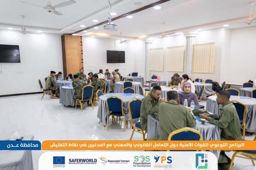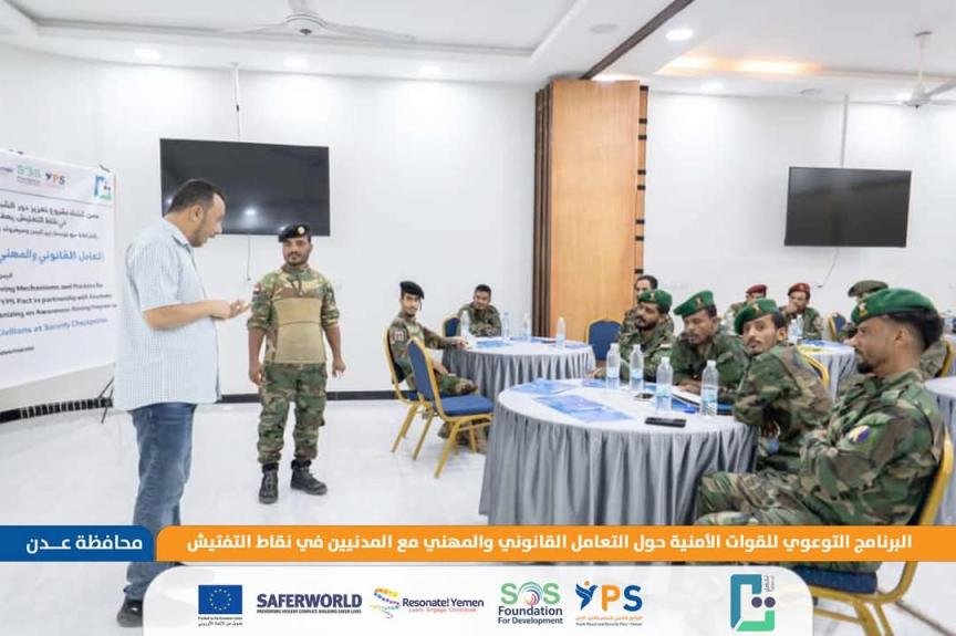 في إطار مشروع تعزيز دور الشباب في تحسين آليات وممارسات حماية المدنيين في نقاط التفتيش، نفّذ التوافق الشبابي للسلام والأمن، بالشراكة مع مؤسسة رنين اليمن، ومنظمة سيفرورلد، ومؤسسة SOS، وبدعم من الاتحاد الأوروبي، برنامجًا توعويًا استهدف القوات الأمنية في محافظة عدن